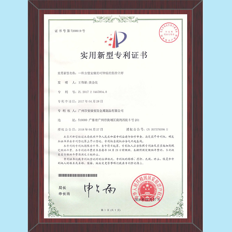 方便安裝的可伸縮的監控立桿專利
